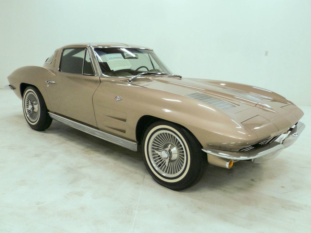 1020U..1963 Corvette Split Window Coupe, 327-340 hp, 4 speed, numbers matching motor, transmission and rear end, also has factory original body/trim tag. Saddle Tan paint with matching Saddle Tan interior. Body-off restoration in gorgeous show condition. NCRS Top Flight award at 98.9%. These type restorations normally cost between $150,000.00 to $200,000.00. NO HIT GM front end and rust-free detailed California chassis. The restoration also included rebuilding the suspension, transmission, rear end and balanced and blueprinted motor assembly. Optioned with power windows, T-10 transmission, posi, AM/FM radio, off road exhaust, tinted glass, K.O. aluminum wheels, and vintage 6.70x15" white stripe tires. Most all factory correct type components including the spare, jack, jack tools, seat belts, washer system, shifter, shielding, air cleaner, alternator, distributor, idler pulley, spark plug shields, hoses, hose clamps, carburetor, valve covers, 6-quart oil pan, fuel filter, starter, expansion tank, radiator, gas door assembly, long base Bowtie mirror, glove box door, cookie tin hood, owners manual, sales brochure, and T-3 headlights. Documented with the NCRS Top Flight certificate, NCRS Confirmation of Existing Awards, owners manual packet, owner history, copy of titles, restoration photos, restoration receipts and three 3-ring binders. Production date of January 3rd, 1963 and delivered new by Thornbury and Allen in Kingsburg, CA (dealer code 620 in zone 6) per the official NCRS/GM Shipping Data records (SDR). Today, the one-year only split window remains one of the most iconic designs in the history of the American automobile. Looks, runs, and drives excellent. CC:1 Consigned to Mecum Kissimmee Collector Car Auction January 15th - 17th, 2026
