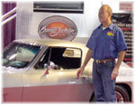 Pat Weidman standing with former PT '57 Corvette and now "Gold" winner - Claire & Pat Weidman Owners